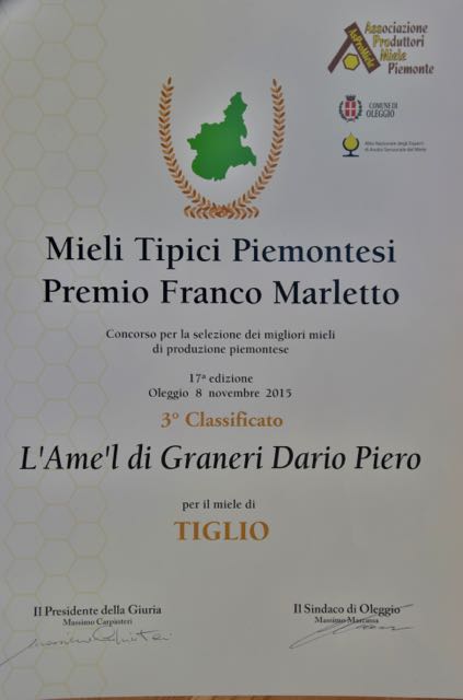 Verso la fine del 2015 si è tenuta l’annuale incontro organizzato da Aspromiele, principale associazione di produttori, all’interno del quale si sono premiati i migliori mieli Piemontesi…..